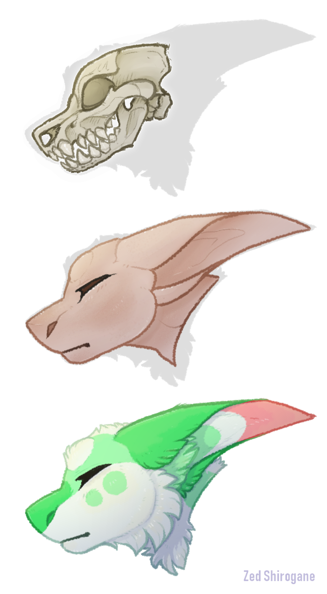 Despite what their unique shark-like anatomy may suggest, manokits do still have bones throughout the majority of their bodies. Their varying fins, large ears, and larger tails are still made mainly of cartilage, muscle, and what you may expect. However, their silhouette defining, pyramid shaped nose ridge is also a direct part of their skeletal structure; unlike other animals where it is made of cartilage. Between the three subspecies, a tribal manokit actually has the least amount of bones. This is due to their shorter tails and occasional lack of a back fin, although their bones are also more dense.
