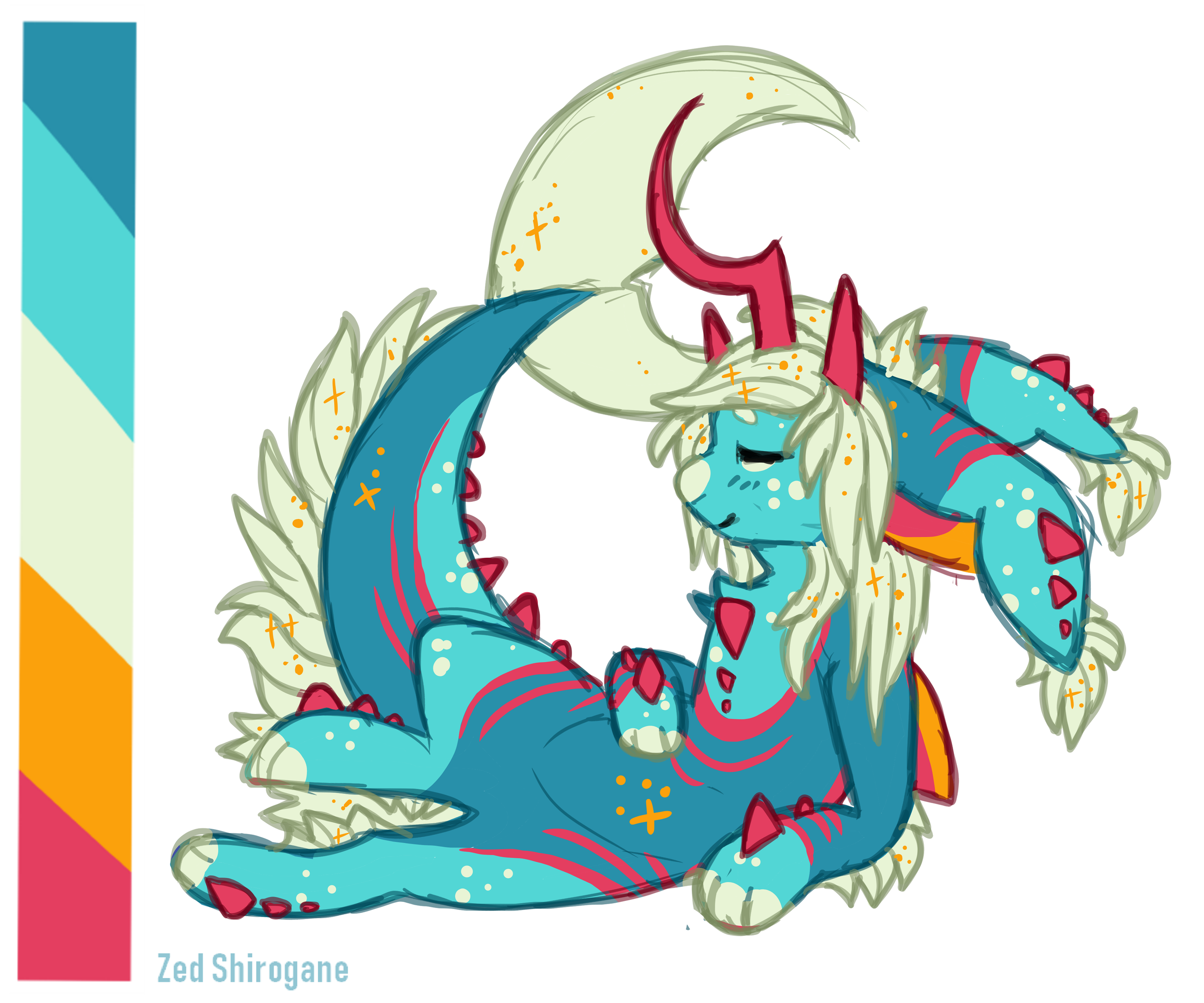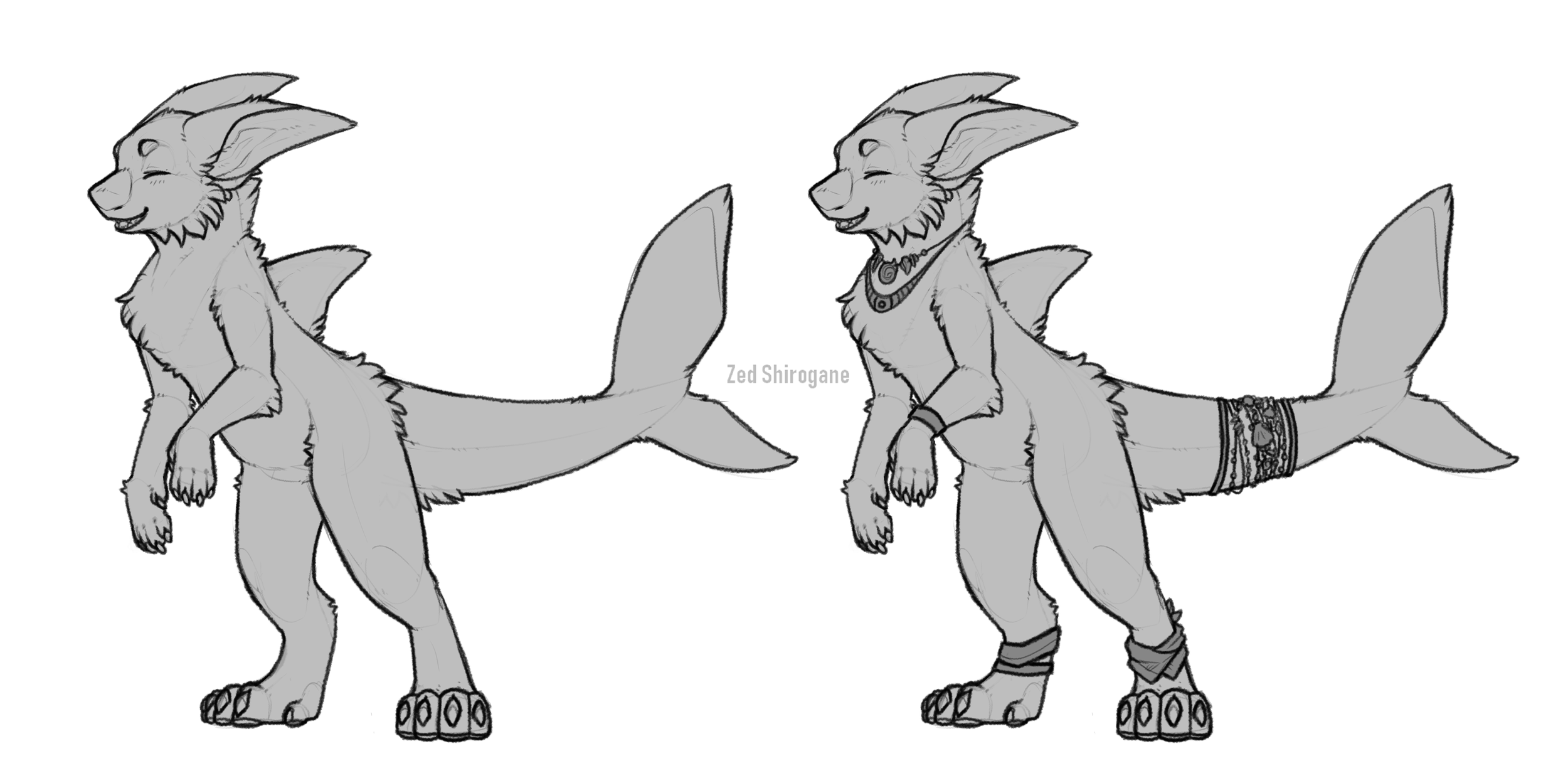 Manokit tails must move in a horizontal fashion. Manokits are based around fish and sharks, as such their tails move in a left-right motion. Tails such as dolphin tails, whale tails, shrimp tails, non-fish tails like crocodiles/scorpions/snakes/etc are not allowed. That is to say, you cannot just put a shrimp tail on a manokit; however, you can have a shrimp inspired tail that still moves in a left to right fashion that implies the looks of a shrimp.